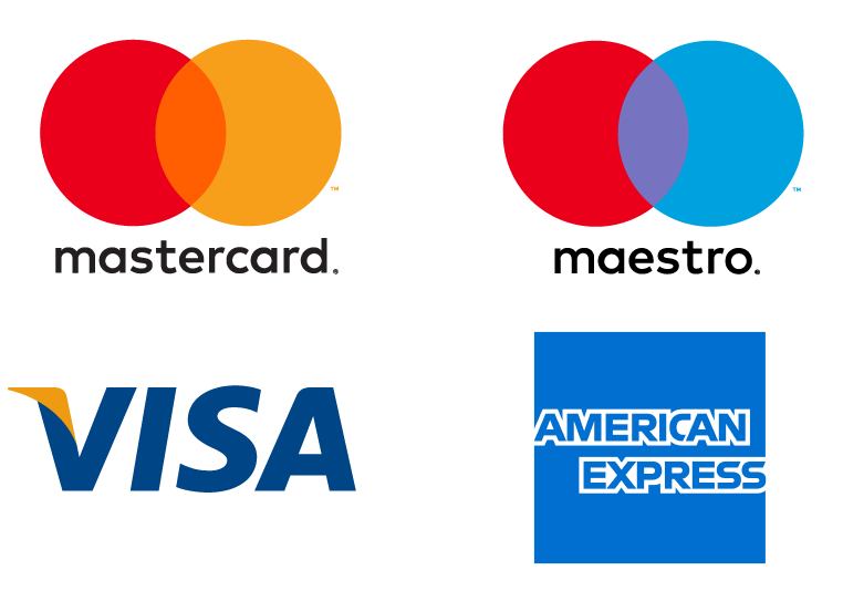 Wir akzeptieren Mastercard, Maestro, Visa, American Express (AMEX) & UnionPay Kreditkartenzahlungen.